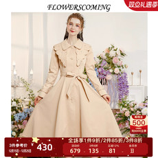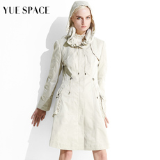 YUESPACE中长款连帽风衣外套春秋女士收腰修身英伦时尚显瘦咖色