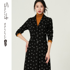 圣轩尼年秋季新款撞色V领印收腰修身显瘦大衣风衣女 T756