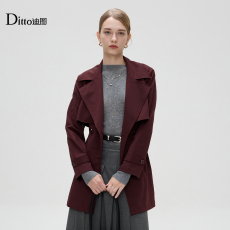 靓诺秋冬中长款外套女士修身显瘦收腰酒红连帽高级感风衣LF19324A