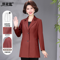 中年妈妈春秋外套2025新款修身显瘦一手长上衣小个子妇女红色风衣