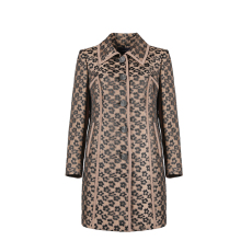 靓诺时尚驼黑提花风衣女士中长款春秋新款修身显瘦外套LF14461A