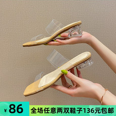 41—43大码高跟拖鞋细跟外穿女凉拖2025夏季优雅透明水钻一字拖潮