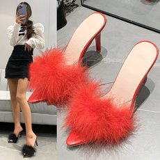 大码凉鞋41一43女宽胖脚女鞋夏季新款外穿拖鞋细跟高跟鞋裸色凉拖