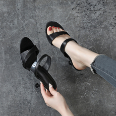 大码女鞋41一43胖脚宽肥粗跟方头一字带凉拖女仙女风配裙子高跟鞋