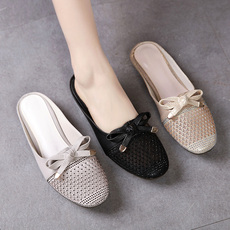 2024夏季新款真皮大码女拖鞋41一43低跟平底镂空凉拖百搭外穿凉鞋