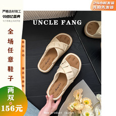 松糕厚底拖鞋女夏外穿2024新款蝴蝶结仙女一字凉拖大码女鞋41一43