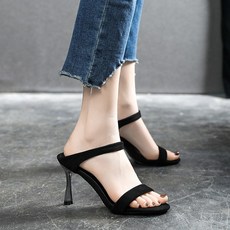 法式一字带凉拖鞋女夏外穿2026年新款高跟套趾凉鞋大码女鞋41到43