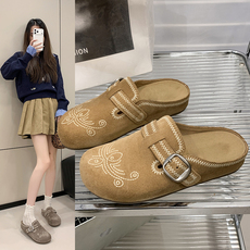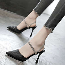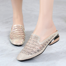 粗跟法式套趾凉拖鞋仙女鞋子外穿2y025新款夏季珍珠凉鞋大码41到4