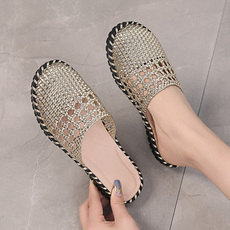 包头半拖鞋女外穿2024新款半托单鞋夏季编织猪笼凉拖鞋大码41一43