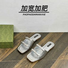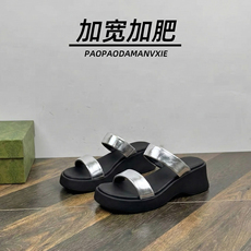 胖脚宽肥大码女鞋41到43平底凉拖加宽加肥外穿银色舒适时尚夏季