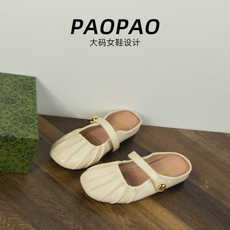 包头半拖鞋女外穿无后跟懒人鞋仙女风平底网红凉拖大码女鞋41一43
