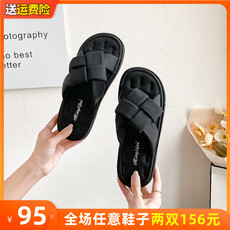 大码女鞋41到43外穿拖鞋2w024新款夏季厚底沙滩交叉带凉拖旅游度