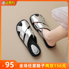厚底凉拖鞋女夏外穿士时尚孕妇40海滩平底真皮大码拖鞋41一43银色