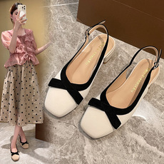 大码包头凉拖女41码低跟法式单鞋夏季外穿凉鞋胖脚宽高跟女式女鞋