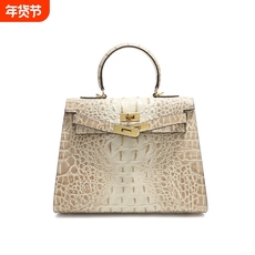 高级感鳄鱼骨纹凯丽包牛皮2025新款手提包欧美时尚真皮女包单肩包