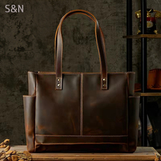 KELU真皮托特包欧美复古风头层牛皮大容量真皮托特包休闲子母女包
