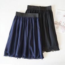 女士短款半身裙高腰显瘦a字大摆蓬蓬裙百搭纯色仙女网纱裙子中裙