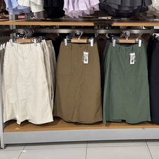 482283 春夏新款女士棉质直筒裙修身中裙时尚百搭半身裙裙子