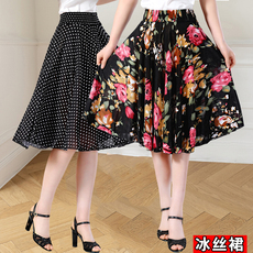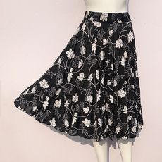春季广场舞裙子半身裙舞裙中裙中老年网纱裙松紧腰民族风女士舞裙