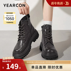 意尔康女鞋秋冬复古休闲马丁靴粗跟单靴英伦厚底户外短靴女士皮鞋