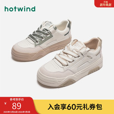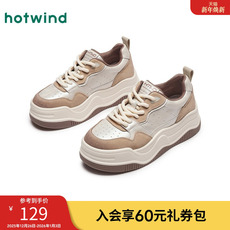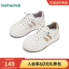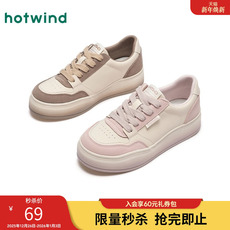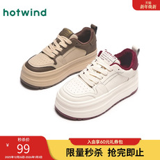 热风秋季新款女士时尚厚底拼色休闲板鞋学生系带减龄小白鞋