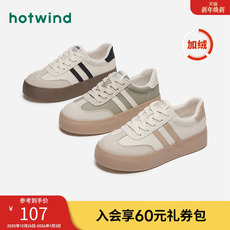 热风冬季新款女士通勤厚底休闲板鞋百搭小白鞋加绒德训鞋女