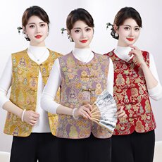唐装中老年女士春秋新款中式复古风大码宽松无袖马甲背心