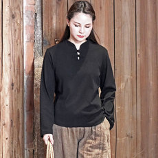 春秋款纯棉老粗布中式女士唐装长袖上衣复古文艺森女衬衫打底衫