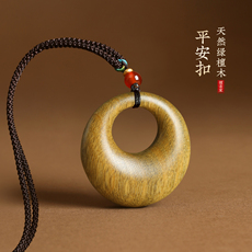 天然绿檀木平安扣吊坠男女士护身符项链木质车挂件包包挂饰钥匙扣