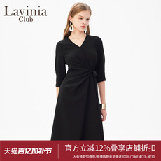 Lavinia官方复古轻礼服小黑裙初春款优雅气质v领收腰连衣裙女士装