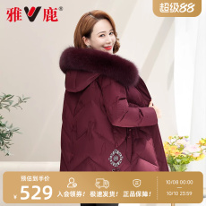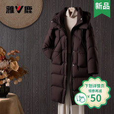 雅鹿官方新款冬季时尚防寒保暖女士休闲中长款宽松羽绒服黑外套