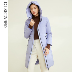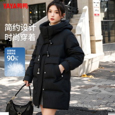 玳莎连帽保暖中长款羽绒服女士冬季新款纯色简约百搭通勤外套鸭绒