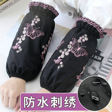 护袖女款防水蕾丝刺n绣加长款女士成人上班防脏袖套羽绒服耐脏袖