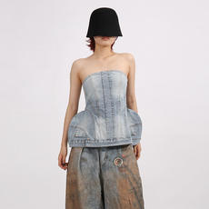 个性街头别致2025秋冬立体造型收腰紧身牛仔抹胸上衣女式背心吊带