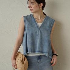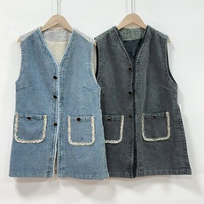 日单秋冬新款女士牛仔马甲背心马甲中长款V领背心上衣