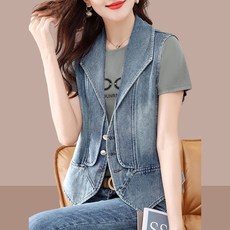2025夏装新款短款女士牛仔马甲女装上衣秋季马夹背心春秋宽松外套