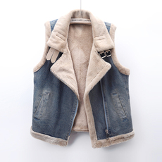 2025秋冬新款韩版潮流加绒加厚牛仔马甲女士宽松机车夹克背心坎肩