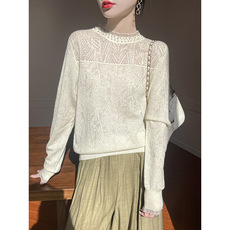 七分袖羊毛针织打底衫春秋2025新款薄款中袖t恤镂空内搭女士毛衣