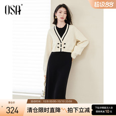女士过膝毛衣裙秋冬季水貂绒马甲+连衣裙两件套时尚背心针织内搭