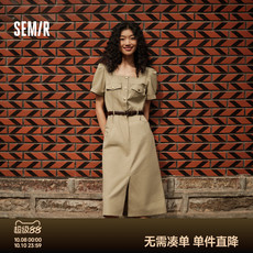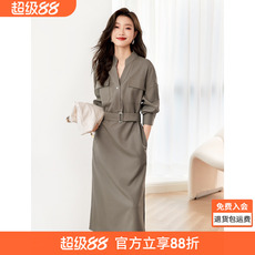 马登落肩薄款宽松中袖七分长袖裙子山系工装风收腰连衣裙女士早秋