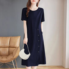 洋气时尚印花桑蚕丝连衣裙女士夏季新款大码宽松遮肉显瘦过膝长裙