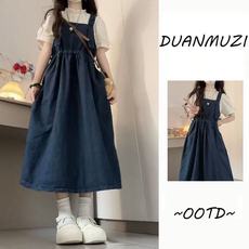品牌女童牛仔背带裙套装夏季2025新款女大童夏裙子韩系长裙夏装连