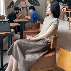 麻连衣棉裙女ZGUAN207年夏裙季新款遮肚子显瘦装修身亚麻套装子两