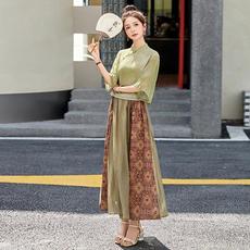 新中式国复风连衣裙套装女新款时尚气ZZHI242质古盘扣两半身夏裙