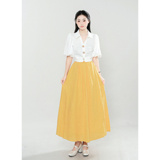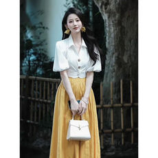 【黄玫瑰】度假泡泡袖宫廷风上衣+黄色半裙新款套装女夏裙子女