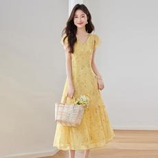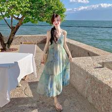 法边式绝美晕染连衣套装女夏裙季新浙2581款巨好看海度假吊风带长