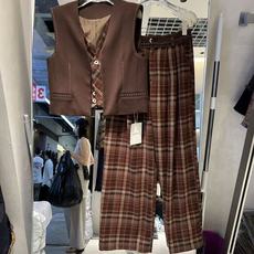 秋季韩版宽松披肩马甲套装女休闲时尚无袖西服上衣A字裙三件套潮