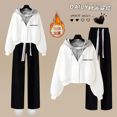 雰囲気女子 毛茸茸软乎乎蝴蝶结围脖外套两件套装2024冬季小个子