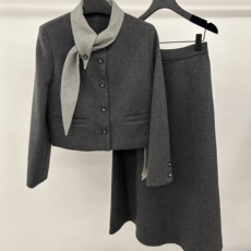 SQ街头女王领结洋气外套A字裙两件套女秋季高级感时尚小香风套装