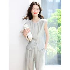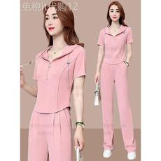 欧洲站女子运动套装2025夏季新时尚风格短袖冰丝阔腿裤两件套时髦